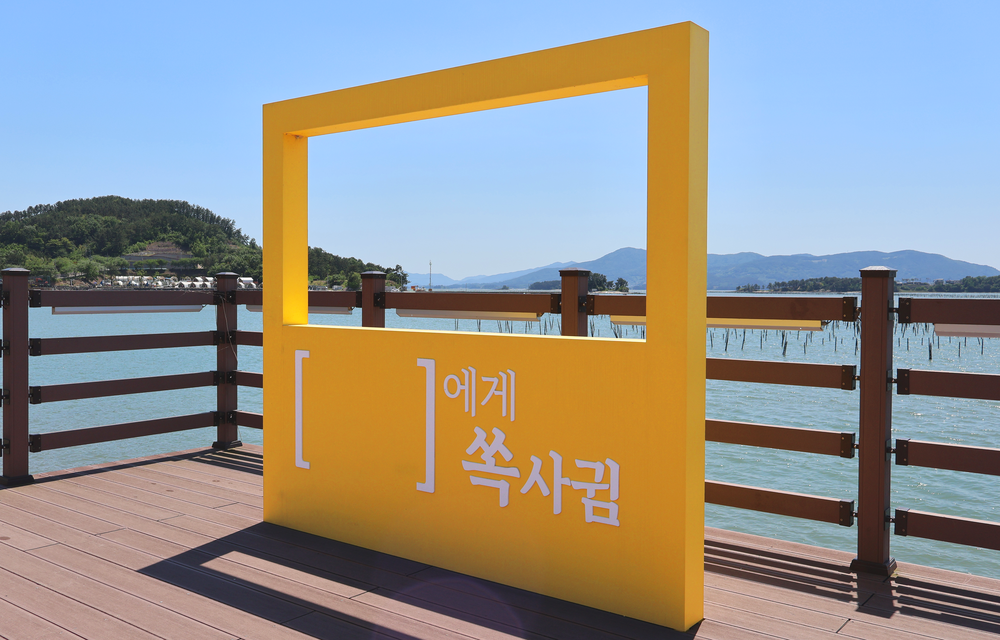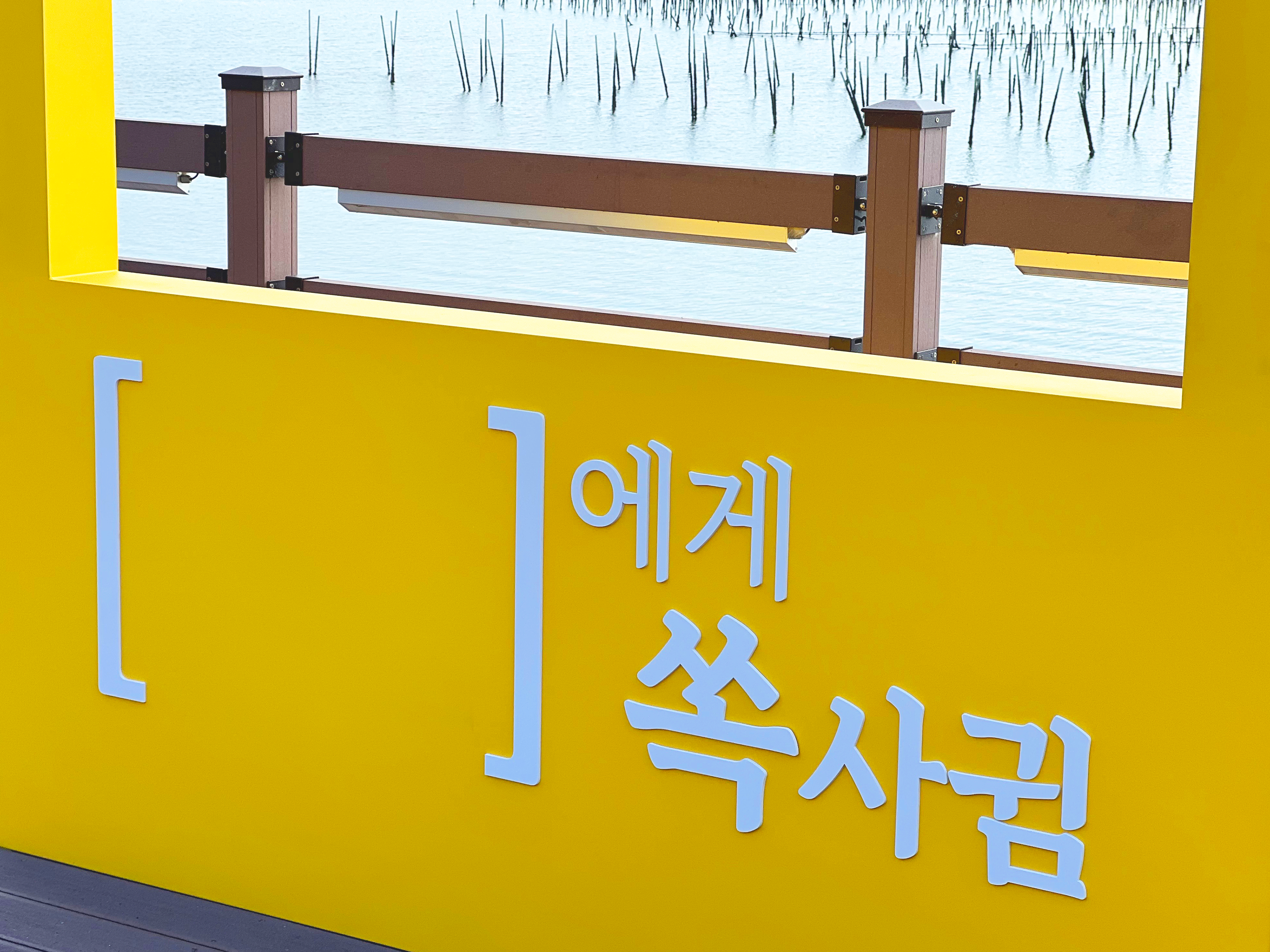사천시의 비토에 있는 쏙사귐 체험시설 데크에 관광객들을 위하여 개발한 포토존입니다.
